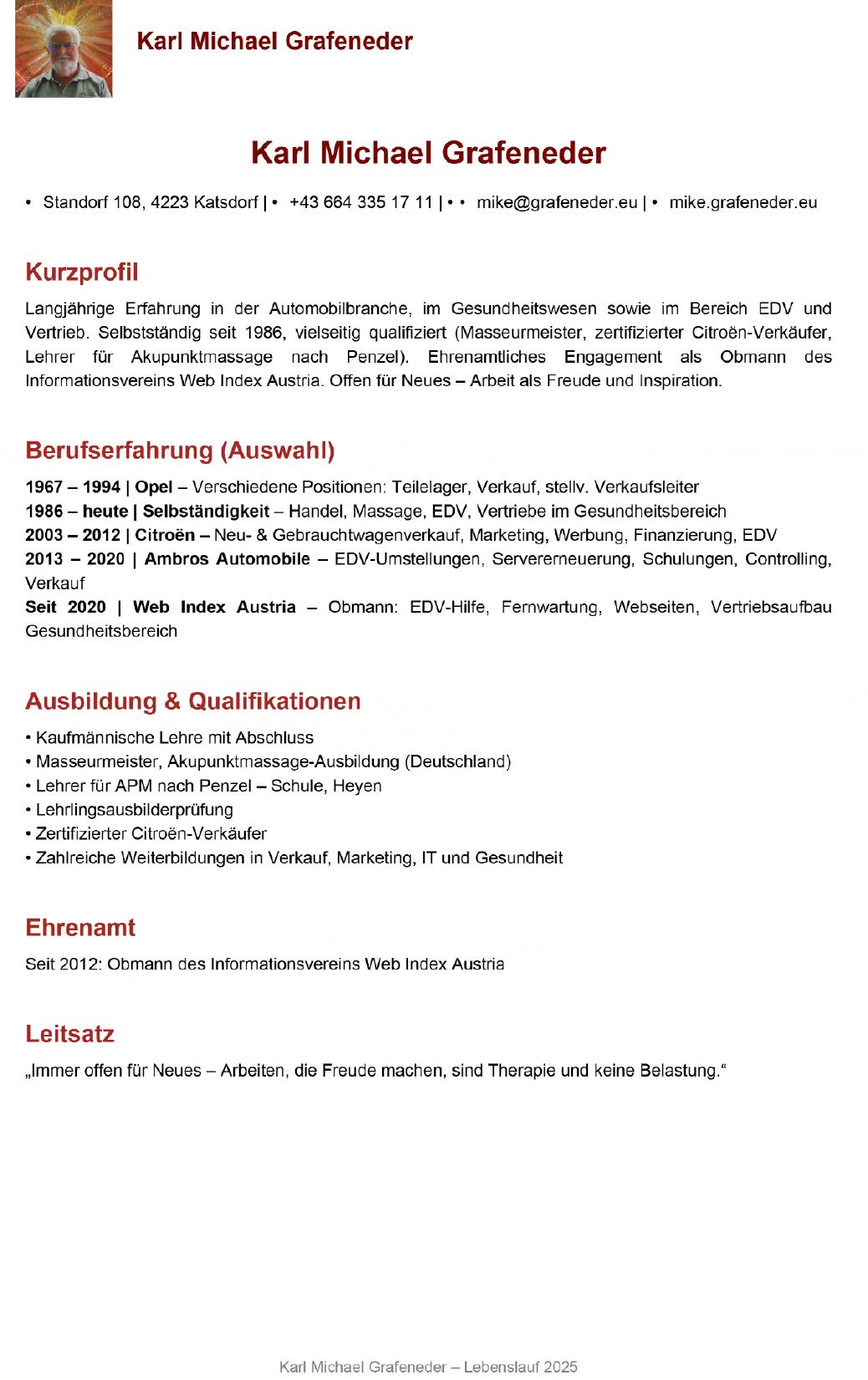 ehrenamtlicher Obmann im Informationsverein WEB INDEX AUSTRIA